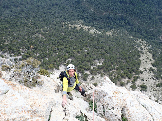 El 4º largo es una placa muy divertida y agradecida de escalar, lo que se puede llamar "love climbing" del que yo creía que no había en las Alcandoras, jijiji.